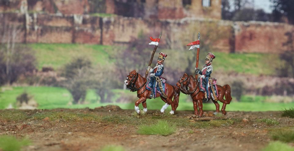 The first of my Polish Lancers finished. A few Horse Grenadiers and a 2nd Hussar provide the company.